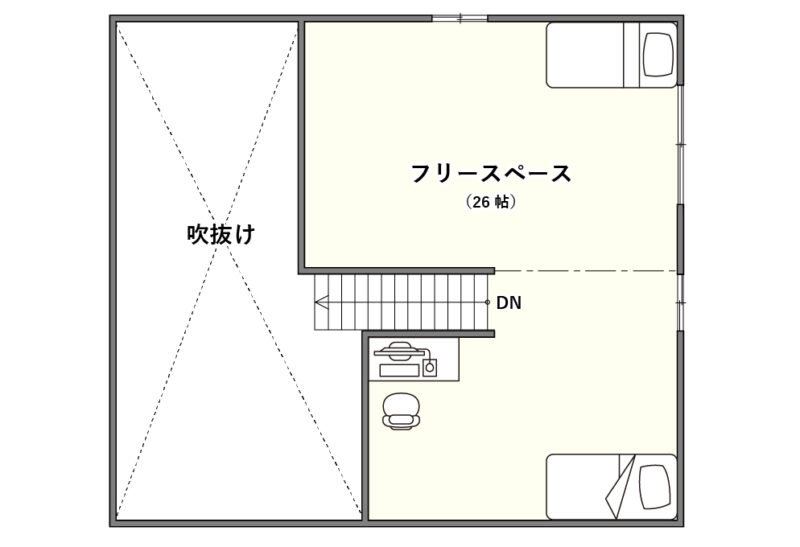 小屋裏2階を備え、家族構成の変化にも柔軟に対応できる住まいです。